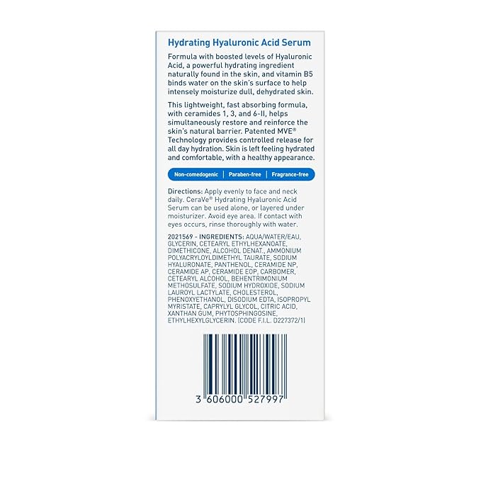 Cerave Hyaluronic Acid Serum for Face with Vitamin B5 and Ceramides | Hydrating Face Serum for Dry Skin | Fragrance Free | 1 Ounce | 30ML